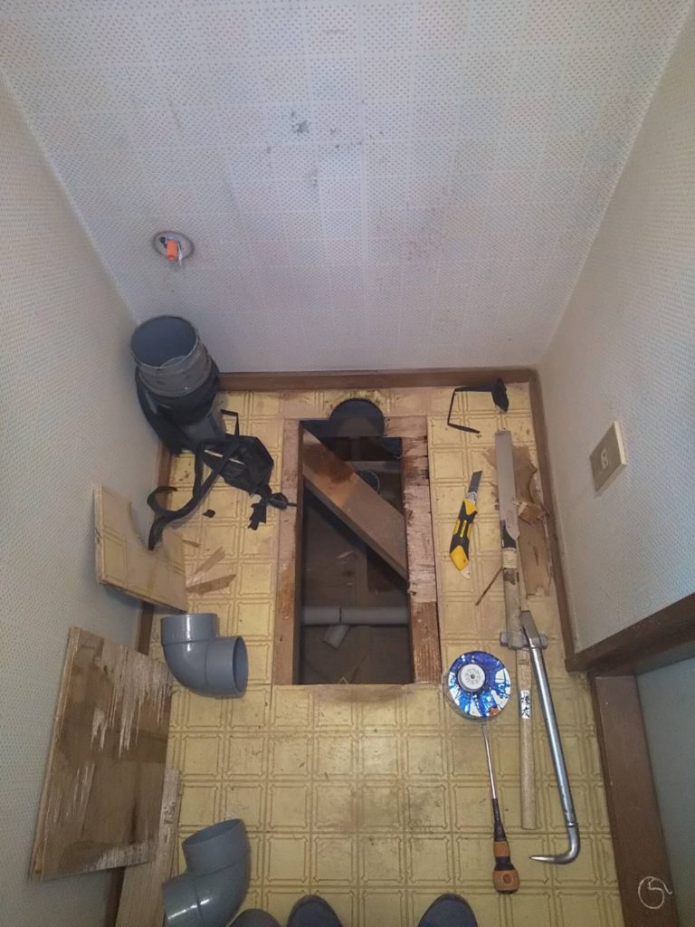 新規トイレ設置の為、排水の位置を変更しました。