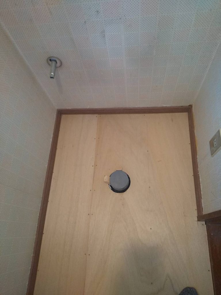 床の下地を新しくし、クッションフロア、壁紙クロスの張替を行いました。