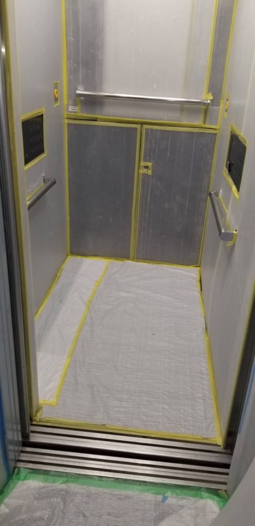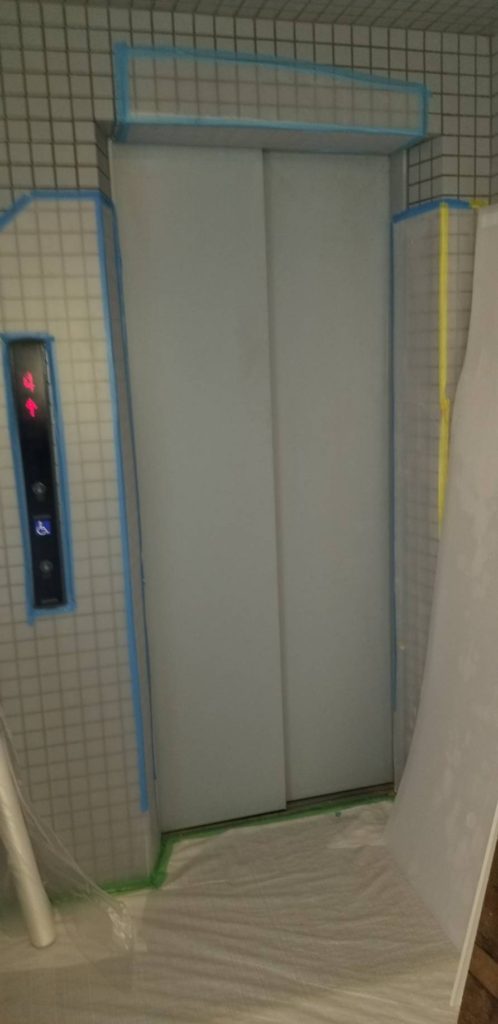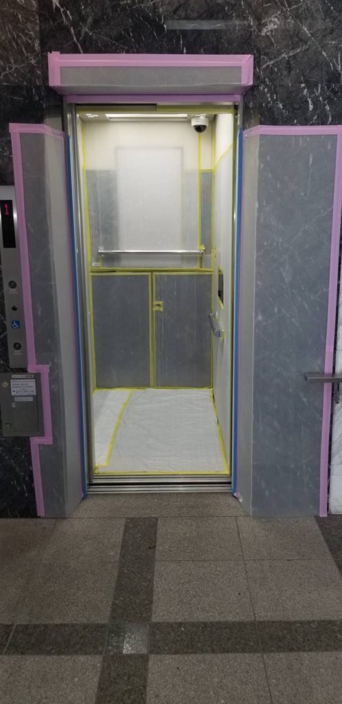 マンションの浴室リフォームを行った時の共用部分養生になります。