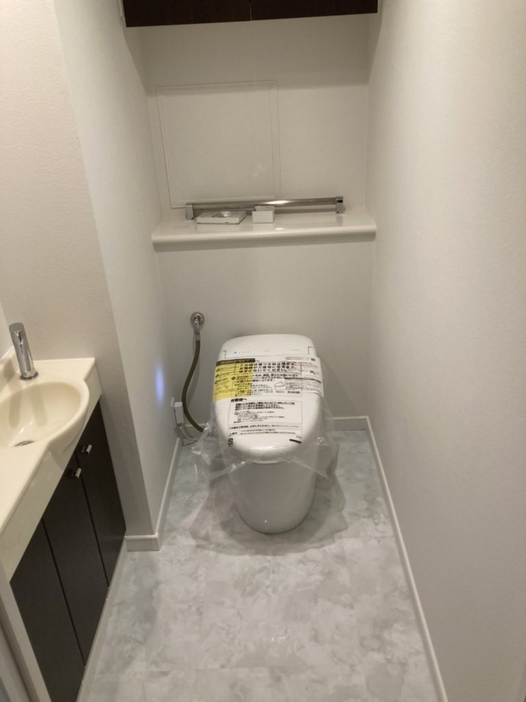 ワンプッシュでウォシュレット前方が持ち上がるので