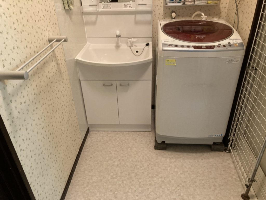 洗面化粧台、吊戸棚の交換とクッションフロアの貼り替えをさせて頂きました。